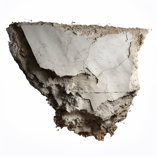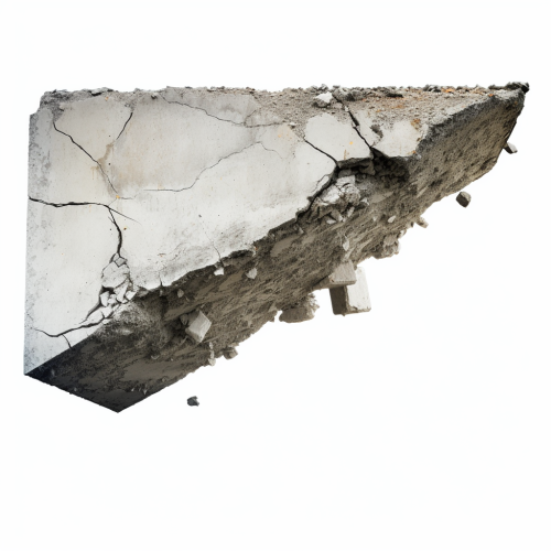 a flat, smooth fragment of reinforced concrete flying in the air, frontal view, white background, studio photograph --style raw