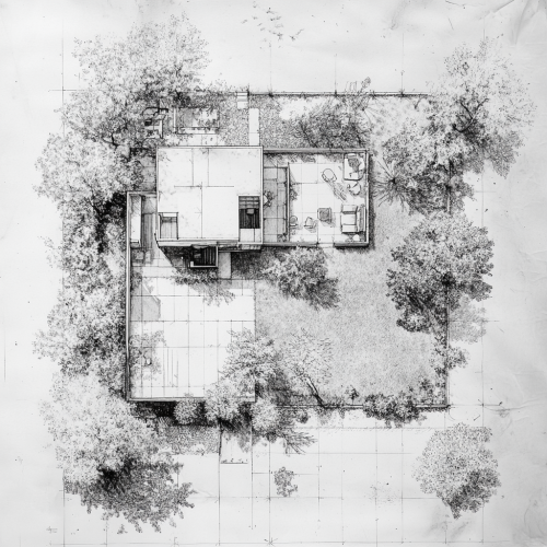 Vue en plan américain. Un quadragénaire habillé sagement et assis à un bureau d’écolier installé dans le jardin de sa maison, s’arrache les cheveux en consultant un code civil. En arrière-plan, sa maison ni trop neuve, ni trop ancienne, un peu délabrée