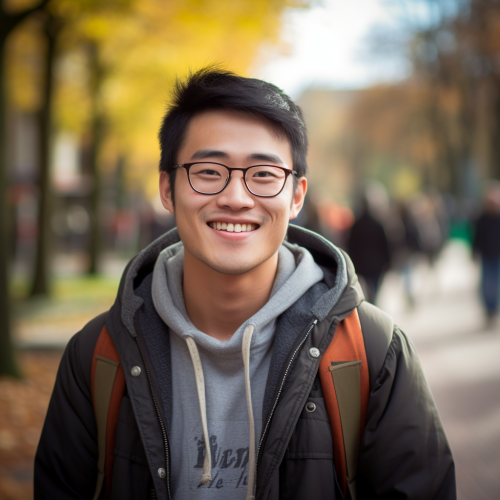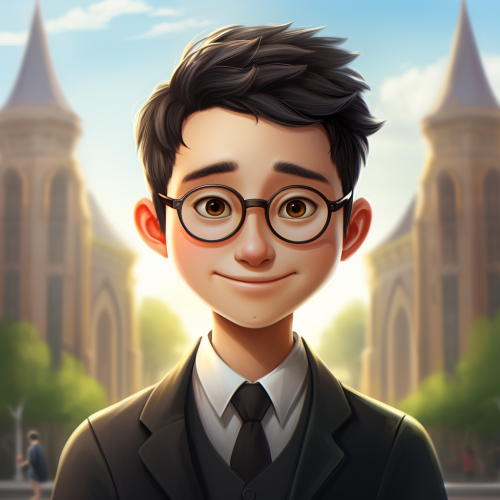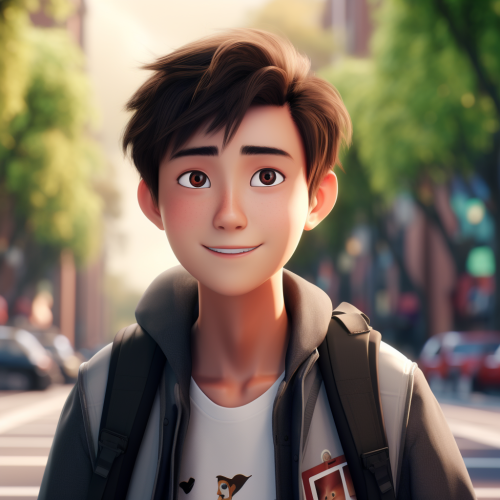 a chinese young man professor, campus, confident smiling with big eyes,pixar style