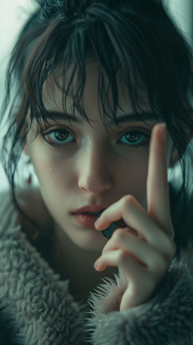 create an image of a girl saying no to the camera with her finger hd super cinematic ai style hd high res --ar 9:16