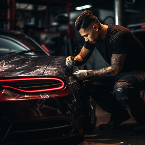 A bald guy from the back facing his computer in a dark room full of content creation pieces with just a table neon light, mastering a high-income skill improves habits, learns to say NO, and focuses on working on a computer. --ar 9:16