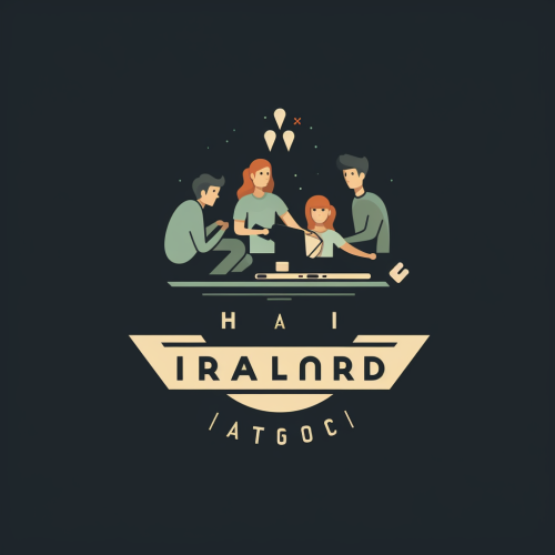 A minimalist T-shirt logo design in black or muted colors. Illustrate a family around a board game, capturing the essence of teamwork and competition. The design should complement the text 'Hráči s návodem'.