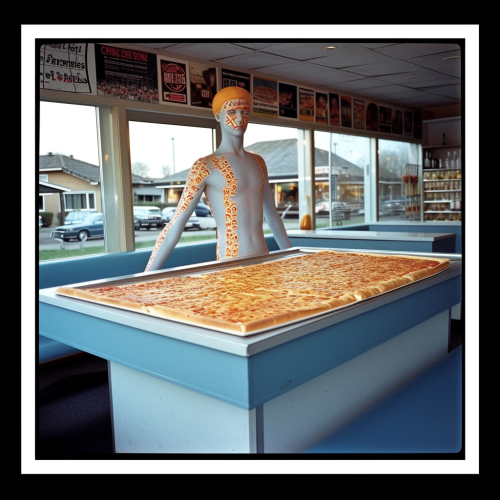a gas station clerk standing behind the counter at night, hyper realistic, cinematic --ar 16:9 --s 750