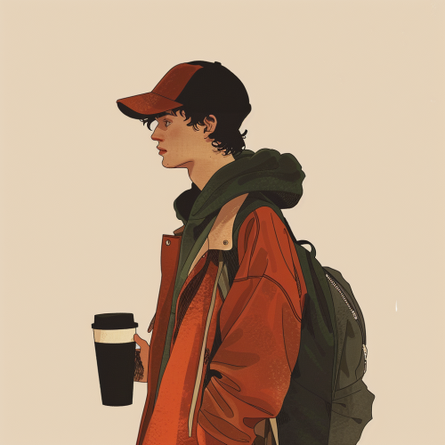 illustration, simple, cool. guy, I left the house at 9:30 and headed to Starbucks.