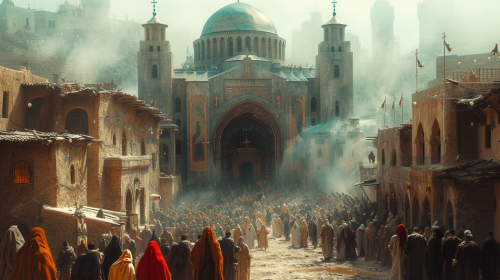 A fresco of a Coptic Orthodox saints, muted earth tones, contemplative gaze, set in a desert landscape, reflecting early Christian Egyptian art. Rustic textures, simple yet profound symbolism, natural lighting casting gentle shadows. Created Using: fresco techniques on plaster, early Coptic art style, subtle color palette, realistic human proportions, naturalistic setting, soft light and shadow play, ancient Egyptian Christian motifs, glibatree prompt, historical art accuracy --ar 9:16 --tile --v 6.0 --s 750