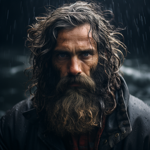 A powerful Viking warrior with a muscular human body and the head of a fierce highland bull, dressed in Viking armor with leather straps and a fur cape. The scene is set on a rocky, mist-covered mountain peak overlooking a raging sea, as storm clouds gather overhead. The bull’s intense gaze and thick horns give a fearless aura, perfectly embodying Scottish resilience. UHD, 4K, --ar 9:16 --c 20 --s 750 --v 6.1