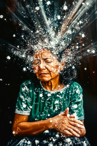 plucking the cosmic strings of thecosmos,, Ephemerality in the form of a portrait of a woman disintegrating into cosmic nebula, full body portrait by bill durgan and rankin and John batho, Hubble telescope imagery, deterioration, oil painting, temporal, transience, fleeting, ominous, wistful, blowing away, dreamlike, Fuji Polaroid film combined with oil painting, surrealistic, cinematic and dramatic and mysterious --chaos 40 --weird 200 --v 6.1 --s 777 --ar 2:3 --style raw