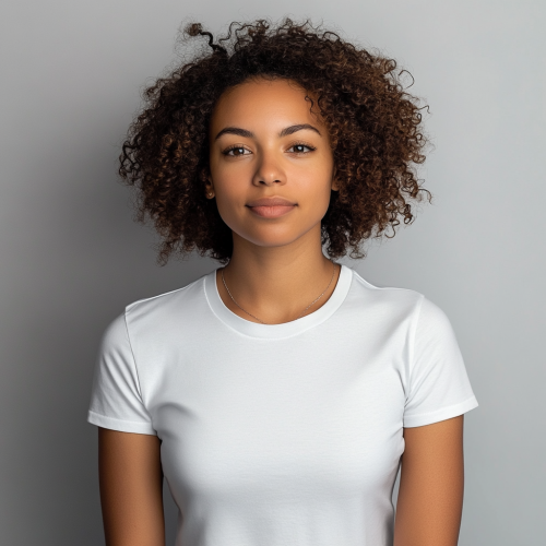 Medium close-up of a blonde woman wearing a gold paperclip necklace, elegant simplicity, high detail, Canon EOS R5, high-quality lens, soft, harmonious light