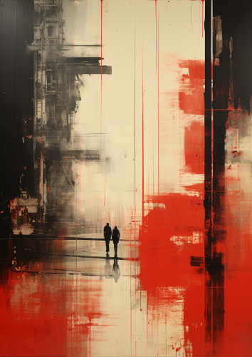 Over a bridge, connections. oriental Empyrean image with Political punk, Retro soul, oriental style, and a Abstract view --v 5.2 --c 15 --style raw --s 300 --ar 5:7