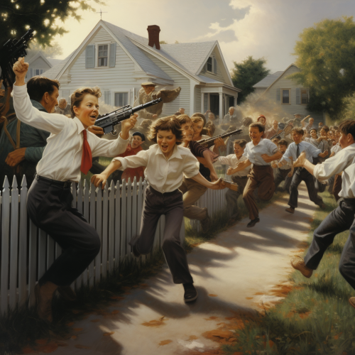 A photo of a young lover couple walking into a fire, shot from behind. one man and one woman They wear colorful clothes, surrounded by flying white birds and burning wings. The scene is captured with film. Lovers walking towards flames, a love and fire theme, during sunset with a slightly darkened sky, with lens flare --chaos 22 --ar 1:1 --sref 2959860992 --personalize 7pfsx2n --sw 25 --stylize 1000 --v 6.1