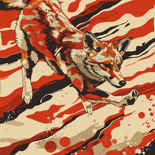 abstract simple 1970's americana style art coyoto jumping transparent background --v 6.0