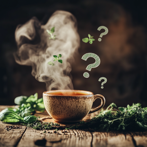 a logo for a company that sells adaptogen tea. a purple mushroom growing from a teapot psychadelic vibes, 1800's myseterious. black background --v 5.0