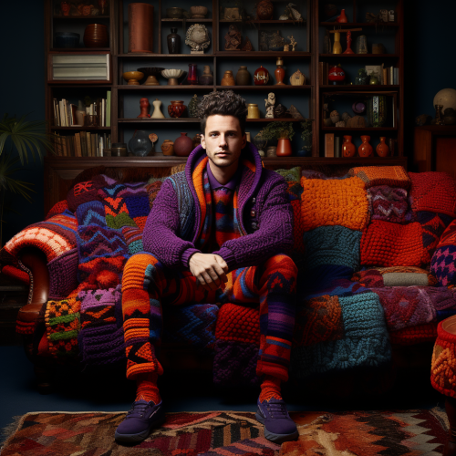 Illustrate a lively, warm living room with a mix of rich, bold colors and playful patterns. Cats roam freely, their personalities blending into the dynamic and joyful ambiance of a vibrant, homey space.
