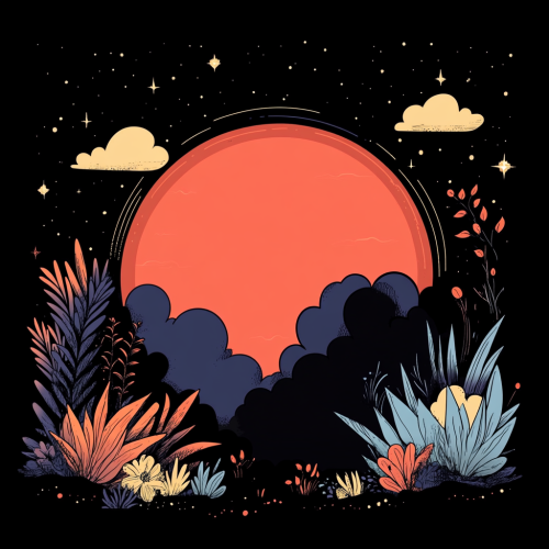 A minimalistic but cozy vector design, cartoon drawing in warm tones, a frame against a black background. Created Using: flat vector illustration, soft gradients, clean lines, minimalism but witchy, abstract clouds, cozy gamer vibes, twinkle lights, plants, witchy, modern technology, neon, professional graphic designer illustrated frame against black.