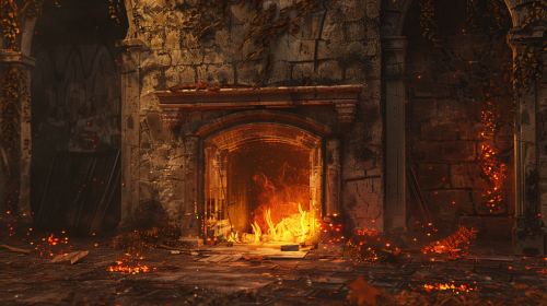 Let the orange embers in the fireplace remain --ar 16:9 --v 6.0