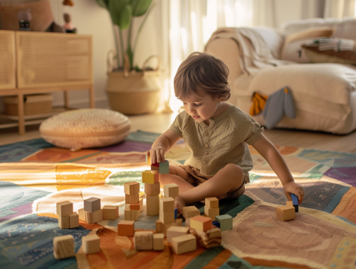 Create a cozy kitchen scene where 80% of the image focuses on a large, smooth white wall that serves as the primary element. The wall should be perfectly smooth and evenly lit with warm, natural light to create a clean and inviting space for wallpaper. In the background, at the extreme edge of the frame, include a blurred, warm-toned wooden shelf with a few simple kitchen items, like a small stack of bowls or a hanging towel. A hint of a soft kitchen rug can be visible to suggest warmth without taking attention away from the wall.