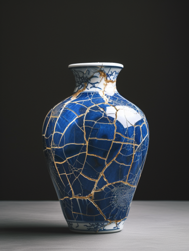 Cracked tank in modern bathroom with missing porcelain pieces.