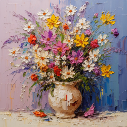 Oil painting of Flowers, minimalist abstract background, High - precision, Abstract Art, lavender, bronze