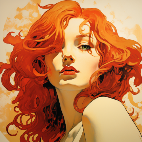 jewel tone colours bold art nouveau poster of a girl with red hair