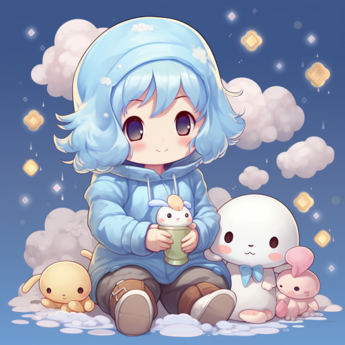 Create a cartoon illustrator for an ethereal water character, humanized character, shimmering and misty atmosphere, prismatic shape, serene and harmonious eyes --style raw