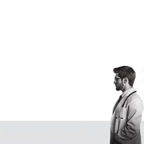 a twitter banner that represents a man that is self confident. The man is a doctor and wears a blouse and is by profile. The man is located at the left of the banner. The rest of the banner is empty. The banner is minimalist and in black and white. The man is in black color and the rest of the banner is in white color