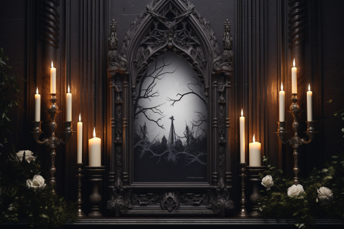 Create a hyper realistic Halloween portrait of a beautiful Victorian Regency Era style home in the style of Thomas Kincaid. The home is heavily decorated outside with lots of spooky decorations and lighting effects. Every year this home decorates for the neighborhood kids and families and give out candies to Trick or treaters. This is a wide shot from the street corner so we see the complete house and entrance fully decorated this Halloween 2024. The owners of this home are very wealthy and have fun decorating their home to look like a spooky and funny Haunted Mansion.