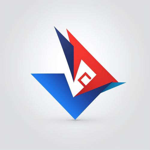 simple, V-shaped, red and blue logo for a korean student organization --v 5.0