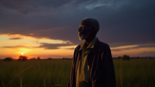 dr sebi set against the african plains at dusk --ar 16:9 --v 5.0 --s 50