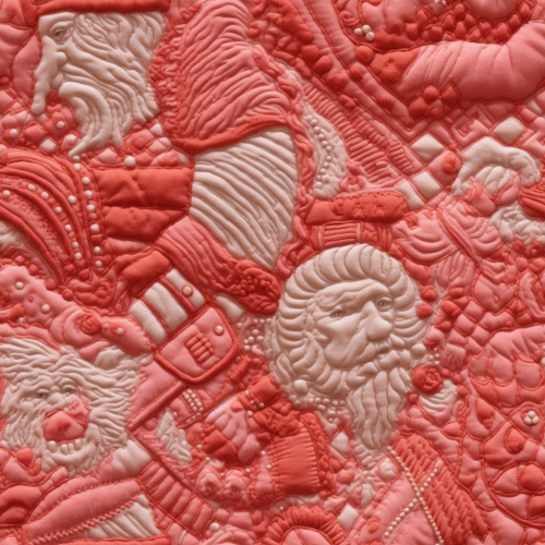 3D hyper-realistic embroidery and clay, a hand quilted fabric made of Santa Claus, on texturized pastel red canvas, in the style of hyperrealistic details, pastel color palette, intricate details, playfully intricate, Christmas pattern --tile --s 500 --c 20 --v 5.1