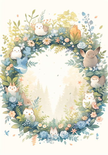 A cute postcard, a picture for babies with a dense round forest on each rim. The middle is empty in white so you can write. --niji 5 --ar 16:23 --s 750