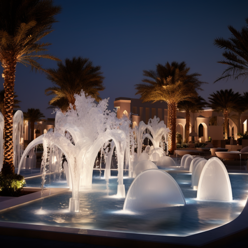 Innovatively Crafted Concept: Stylish and Contemporary Fountains with Ice Illumination and Beautiful Water Jets for Private Residences in the Qatar Region, Offering a Fresh Perspective on Timeless Elegance, Up Close and Without Distraction from the Background Image.