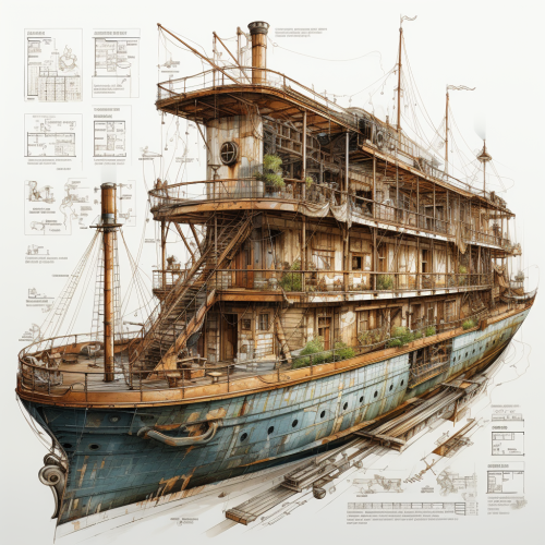 plan of railing of abandoned ship, only the railing, right side, very deteriorated, ghost ship, front view, we are seeing it as if we were standing in a door, the railing is in front of us, the floor is very deteriorated by the passage of the time,titanic , closed up --s 500