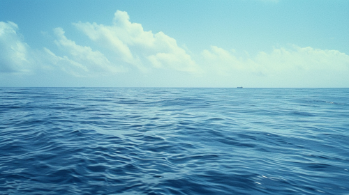 Imagined scene in the central Pacific Ocean on October 06, 1966, focusing on the endless expanse of water. The foreground shows gentle swells moving under a calm sky, with a cargo ship faintly visible on the horizon. In the background, the open sea stretches endlessly under a pale blue sky, reflecting the vast, quiet solitude of the remote Pacific. The lighting is soft and serene, capturing the peaceful nature of this distant oceanic region. --ar 16:9 --v 6.0 --style raw