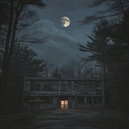 Creepy cabin in the woods by the lake