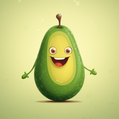 Cartoon Avocado. Cute Cartoon Avocado Character (Created with Generative AI): avocado, fruit, character, big eye, funny, copy space, green, vegetable, food, silly --ar 1:1 --v 5.2