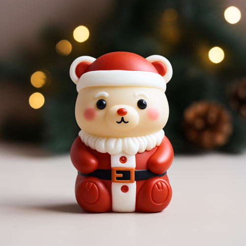 Design a cute, simple, yet modern teddy Santa candle, in white mood, sanrio style --s 250