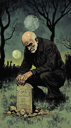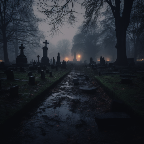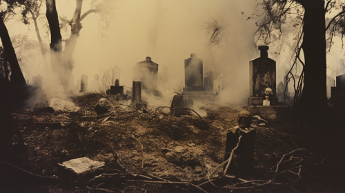1980's Polaroid photo of a creepy graveyard, smoking, dirt, rust, --ar 16:9