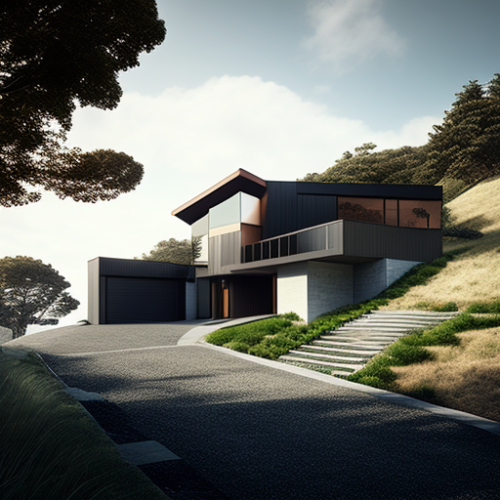A futuristic house with lit up windows sitting alone on a grassy hill. The background is a a post-apocalyptic wasteland with glowing radiation and smoking craters amid the rubble. detailed. photorealistic. dramatic lighting. dramatic colors. --no people --no moon --ar 3:2