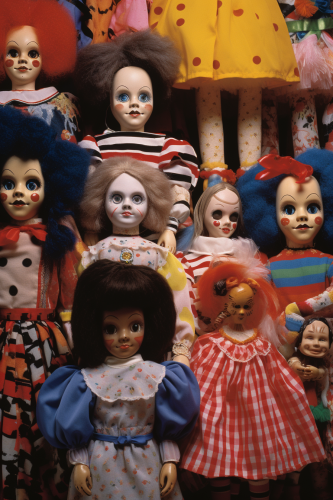 A creepy haunted poltergeist doll made out of shattered porcelain, navy blue, black, silver, gold, abandoned, --chaos 5 --stylize 250