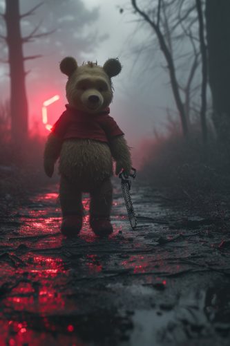 Creepy Winnie The Pooh with big eyes and teeth