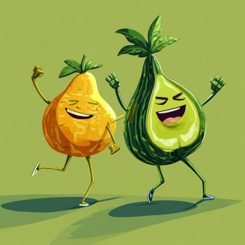 I was thinking some anthropomorphic fruits and a anthropomorphic green Japanese maple leaf charecters dancing in a Congo line in a 80's cartoon style don’t make it childish