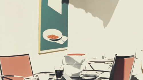 Editorial photography, chili soup, close-up shot, Canon EOS R5, ambient light, modern setting, indoor, sunny weather, serene mood, Stanley Kubrick style, 2020s, #EAEAEA --ar 16:9 --style raw --s 50 --sref 2482