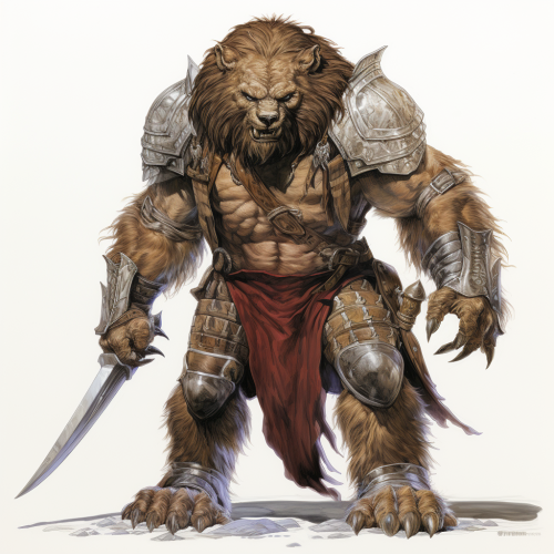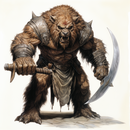 [Angry][Large][Bugbear], Full Body, White Background, Larry Elmore Illustration, Epic Design, RPG Creature, Dark Fantasy, Centered, Drawing Sheet, Watercolor Sketch, Hyper-Detailed, Realistic, No Text, No Writing, No Watermark. --v 5.2