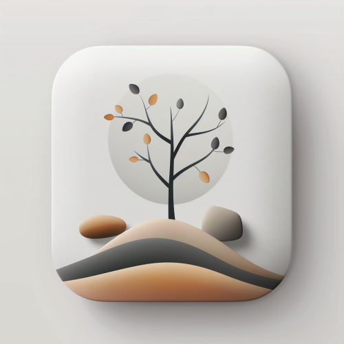 square modern ios app logo design of a booking app for a longevity club, minimalist, serene, peaceful, birch colour, oyster grey colour, matt colours, light earth colours, healthy horizon, ios app icon, simple ui, flat design, white background