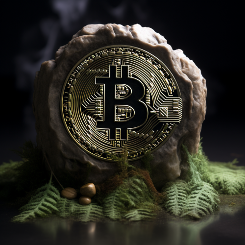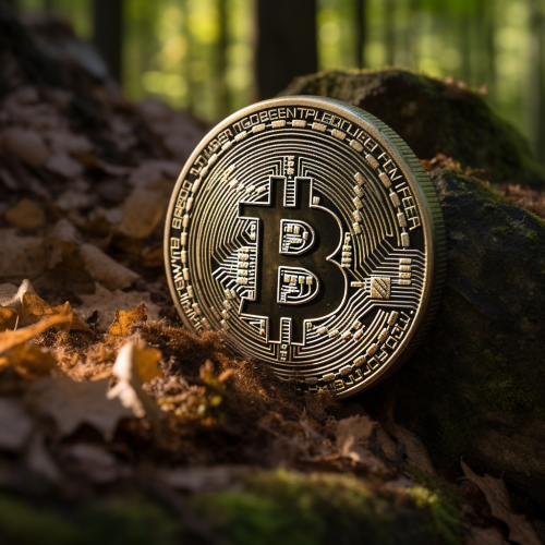 Bitcoin in stone in forest