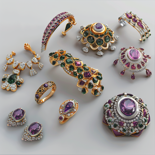 informational poster for a luxury jewelry brand. Arrange the same velvet jewelry boxes in rich colors like emerald green, burgundy, and midnight blue in the exact same stacked composition on a dark, elegant background. This time, all boxes are open, showcasing sparkling jewelry inside--rings, earrings, necklaces, and pendants with intricate designs and gemstones. Ensure the lids are fully open to reveal the contents. The soft, dramatic lighting highlights both the jewelry and the velvet textures, casting subtle shadows to enhance the luxurious and mysterious atmosphere --ar 4:5 --s 250