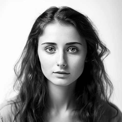 High definition mono chromatic b& w beautiful woman, focus on the beautiful women, white background, realistic, lifelike, Leica APO - Summicron - M 35 f/ 2 ASPH lens --v 5.0 --s 750