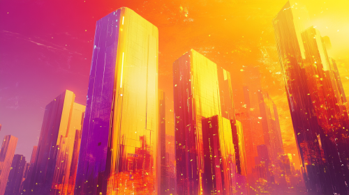It is primarily composed of overlapping shapes of triangles and rectangles, and has a minimalist style with a color palette that includes shades of pink, blue, purple, yellow, orange, and white. The overall composition creates a sense of structure and sophistication, with a balanced use of negative space to enhance its sophisticated appearance.--ar16:9
