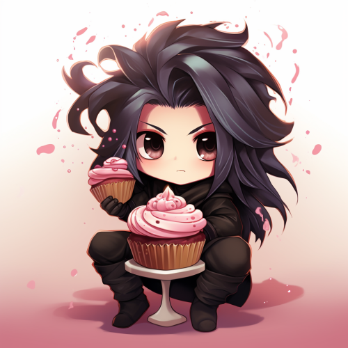 Vector Illustration of a cupcake, depicted in a cartoon gloomshade wisp style. It has an ethereal and Christmas appearance, with a translucent or semi-transparent body. It emits a soft glow, indicative of magical nature. Despite simplified orb or cloud-like form, the face is expressive with eyes and possibly a mouth that conveys emotion. It floats gracefully, leaving behind a subtle tail or trail. Its vibrant pink colors stands out against a natural backdrop of a snowman , Christmas threes, or Santa Claus. It has sparkling Christmas effects.