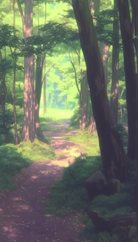 90s style anime screencap of a beautiful forest Grove. Magical vibes. 90s retro style. Vintage. Percise. Earthtone palate muted. Chromatic aberrations. In the style of studio ghibli --ar 9:16 --niji 4